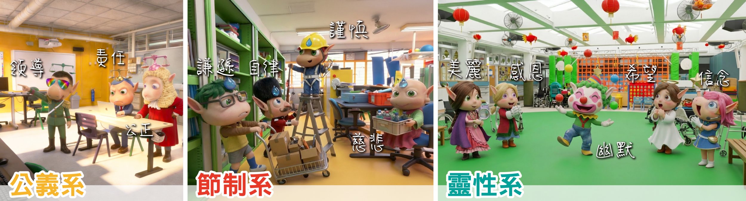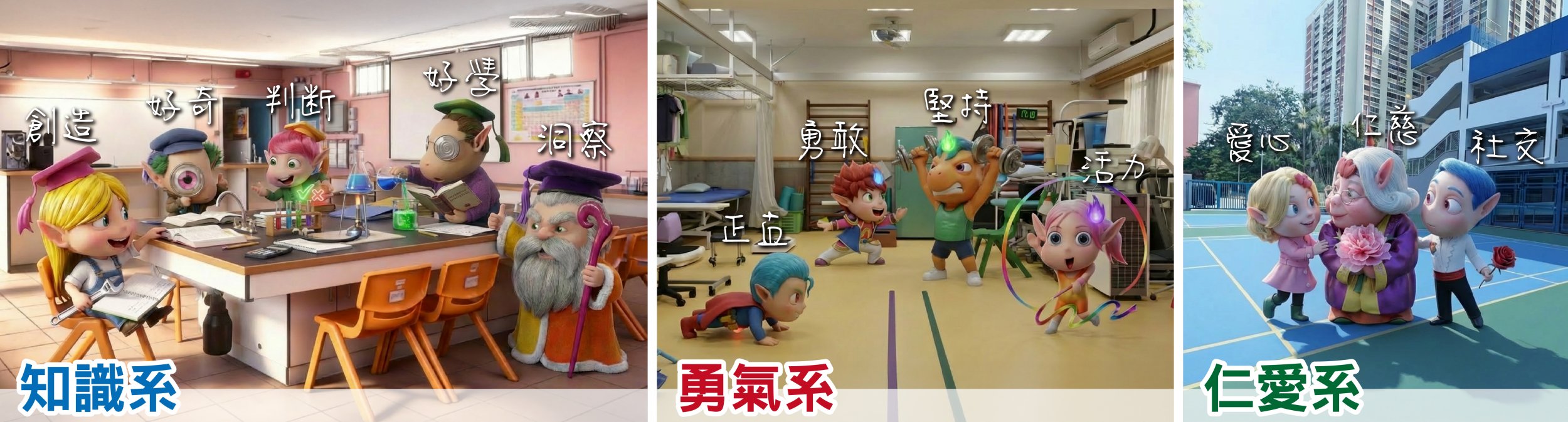 - 以全校參與模式推行德育及公民教育,透過早會、班主任課、成長課、主題活動等,培育學生正確的價值觀和態度。